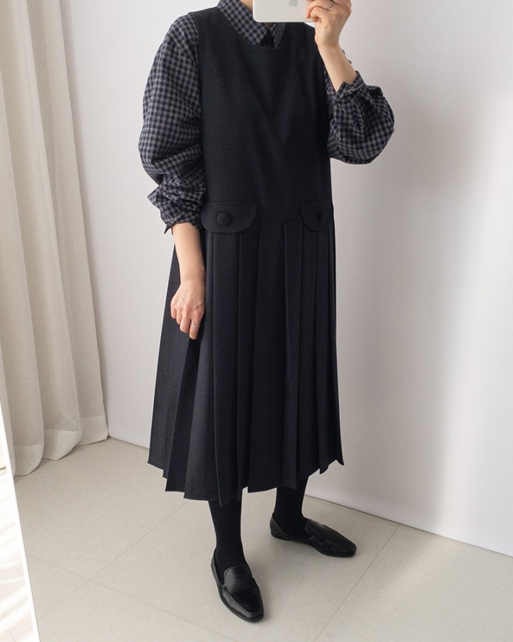 세잔느 플리츠 원피스_navy