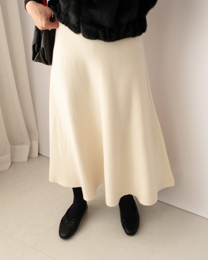 노팅힐 플레어 니트스커트_cream