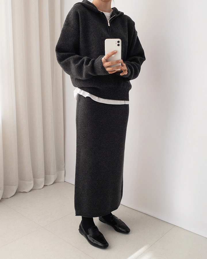 나일 니트 롱스커트_ivory