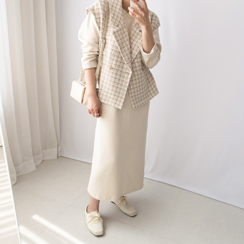멋진 스타일을 완성해주는 트위드 조끼예요~